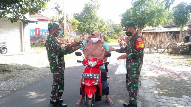 Kegiatan pencegahan atau tindakan preventif tentang bahaya virus Corona (Covid-19) terus disosialisasikan oleh petugas kesehatan maupun aparat teritorial yang berada diwilayah binaan termasuk hentikan warga yang lewat dan tidak mengenakan masker.