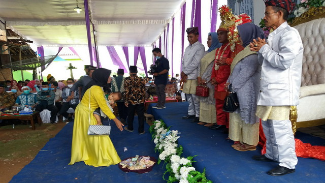 Foto:seorang ibu sedang melakukan sawer pengantin