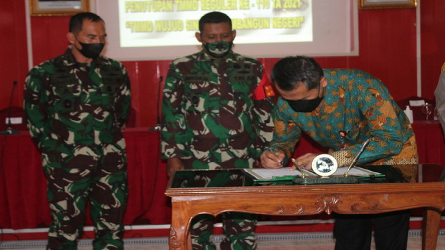 Surakarta.- Babinsa Kelurahan Kemlayan Koramil 03 Serengan Kodim 0735 Surakarta Serka A. Rumbawa dan Koptu Catur bersama Lurah AH. Fajar Koeswidhiyanto, Bhabinkamtibmas Aiptu Sarjono serta Satpol PP menghadri Mediasi Pelaksanaan Kegiatan Pelaku Usaha berkaitan dengan Pengendalian Penyebaran Covid-19 bertempat di Aula kelurahan Kemlayan Kecamatan Serengan, Sabtu 16/01/2021.
