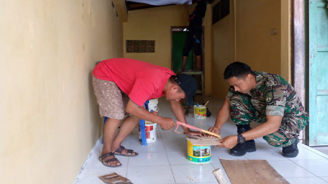 Terlihat Babinsa dengan penuh semangat dan ikhlas dalam membantu warganya (Mas Sangga) yang sedang merehab/merapikan rumahnya dengan tujuan agar rumahnya lebih rapi dan nyaman untuk di huni.