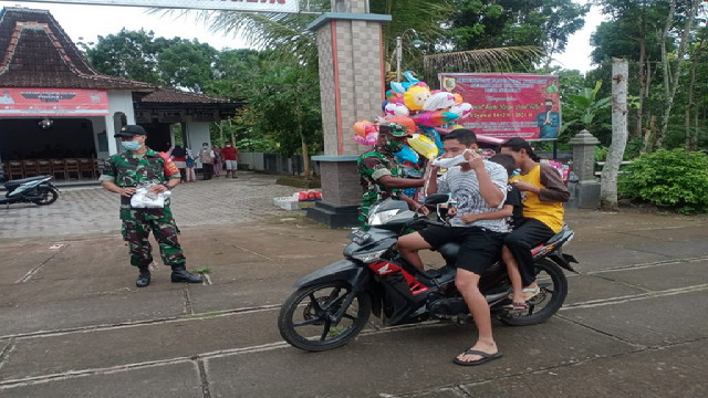 Rabu 24/11/2021, Selain memberikan himbauan penerapan protkes, Anggota Babinsa Koramil 21/Bulukerto Serma Suparno, Sertu Heri Santoso dan Serda Ortizal, juga tampak memberikan masker secara gratis kepada warga yang kedapatan tidak memakai masker.