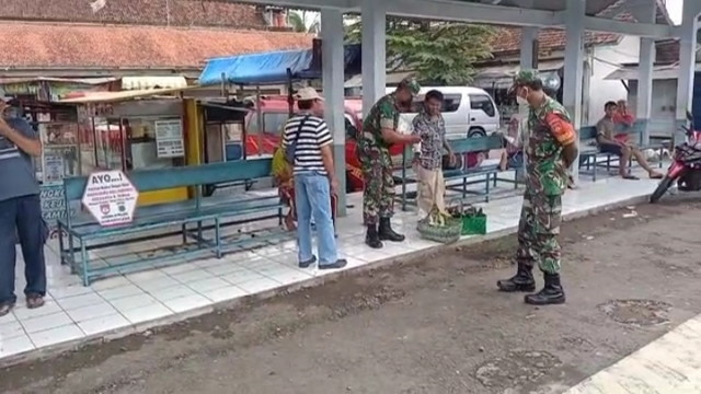 “Mohon maaf bapak ibu sekalian menyela satu antrian untuk ibu ini?.” Ucap Babinsa Bendo dengan membopong warganya yang lumpuh kepada warga lainnya.