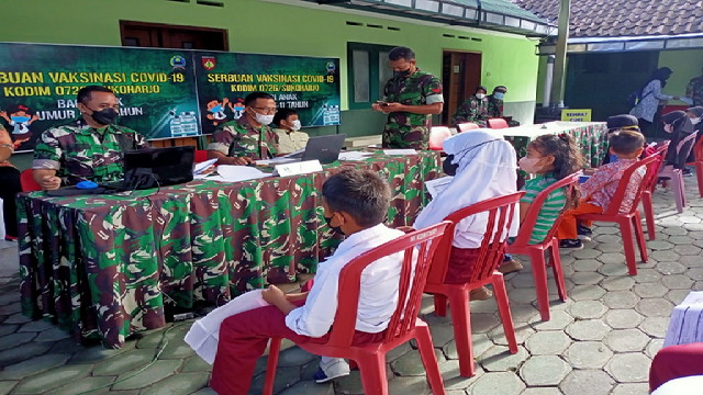BoyoIali.- Babinsa Koramil 17/Wonosegoro Serda Hari J dan Bhabinkamtipmas Polsek Wonosegoro Aiptu Jayin melakukan pemantauan pelaksanaan Bulan Imunisasi Anak Sekolah (BIAS) di wilayah kerja UPTD Puskesmas yang bertempat di SDN dan MI Kedung Pilang Kecamatan Wonosegoro, Kabupaten Boyolali. Jum’at, 20/11/2020.