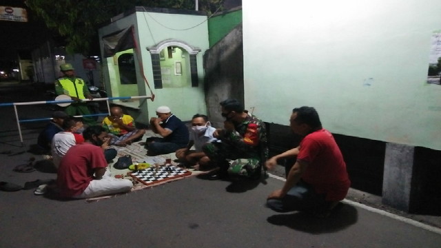 Surakarta.- Babinsa Kelurahan Danukusuman Koramil 03vSerengan Kodim 0735 Surakarta Koptu Tito melaksanakan PPKM (Pemberlakuan Pembatasan Kegiatan Masyarakat) di Pasar Hardjodaksino Jln. Yos Sudarso Danukusuman Serengan Kota Surakarta, Senin 19/04/2021.