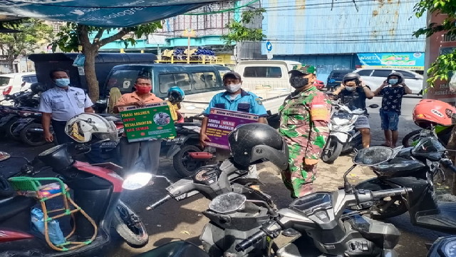 “Dalam hal ini disampaikan kepada pedagang maupun pembeli di Pasar Hardjodaksino agar selalu rajin Cuci Tangan, Pakai Masker maupun Jaga Jarak sebelum dan saat maupun berada dalam Pasar sesuai anjuran pemerintah selalu Memakai Masker serta tersedianya tempat Cuci Tangan”. Tegas Koptu Tito.