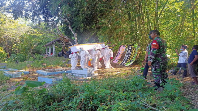 “Pihak rumah sakit menyarankan untuk dilakukan pemakaman dengan protokol Covid-19, Sehingga almarhum dimakamkan sesuai prosedur yang ada,” ungkap Pelda Edi.