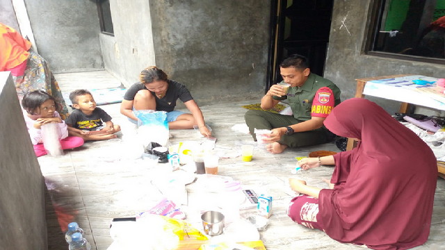 Terlihat Babinsa sedang membantu meracik bahan minuman, Kopi fruit milik ibu Novi yang akan di jual setiap hari untuk penghasilan sehari-hari. Dengan sistem Online Food dan dan buka stand di pinggir jalan.