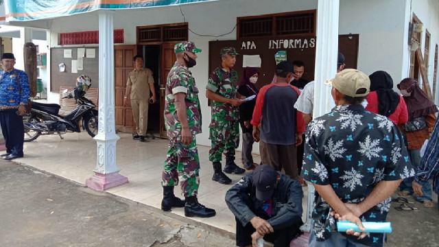 ” Mohon kepada warga agar tidak berkerumun dan tetap memakai masker masing-masing semua demi kebaikan kita bersama !!” himbau Babinsa kepada warga.