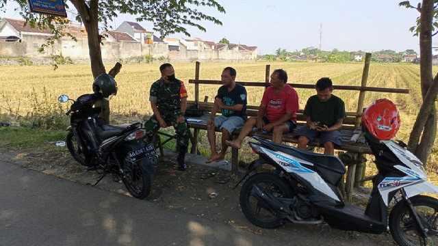 Sragen, Sertu Darmadi Babinsa Kel Kroyo Koramil 02/Karangmalang Kodim 0725/Sragen melaksanakan kegiatan Komsos dengan warga Kampung Putatan RT. 06 Kel Kroyo, Senin 25/07/2022.