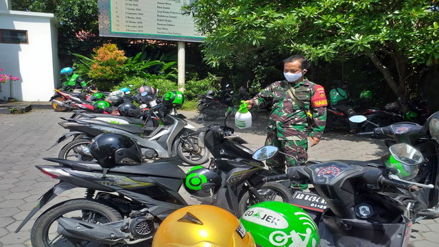 Tampabatas.com(SMSI), Surakarta.- Babinsa Kelurahan Manahan Koramil 02 Banjarsari Kodim 0735 Surakarta Serka Saring dan Koptu Supriyadi bersinergi bersama PT Gojek Indonesia dalam upaya memutus rantai penyebaran Covid-19 bagi Mitra Gojek di area Parkir pintu belakang Taman Balekambang Jl. A. Yani Kelurahan Manahan, Kecamatan Banjarsari Kota Surakarta.Kamis 30/07/ 2020 pukul 15.00 sampai 16.00 Wib.