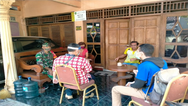 Tampabatas.com(SMSI), Surakarta.- Babinsa Kelurahan Nusukan koramil 02/ Banjarsari kodim 0735/Surakarta Serka M.Nasirin beserta Bhabinkamtibmas melaksanakan kegiatan Komunikasi Sosial dengan tokoh Masyarakat Sugiyatmo ketua RW 03 .bertempat di Kp.Prawit RT 02/ RW 03 Kelurahan Nusukan Kecamatan Banjarsari . Sabtu 25/7/2020.