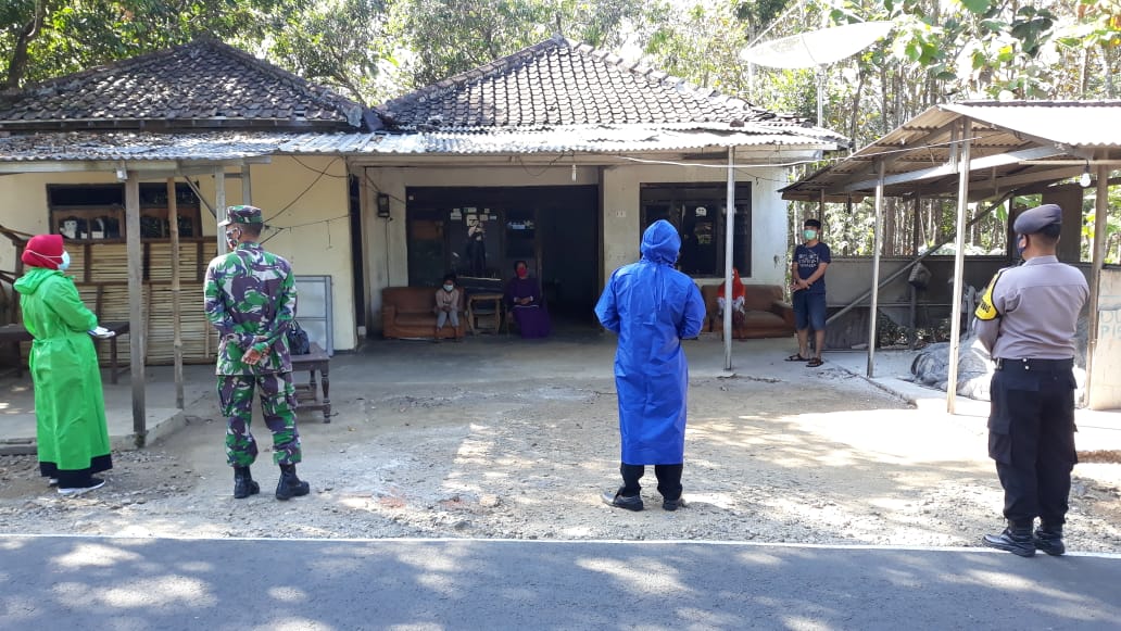 Babinsa Serda Agus memberi keterangan, keterlibatan kami di sini untuk mendampingi tim kesehatan dari Puskesmas Jatisrono II guna mendata dan mengecek, keadaan kesehatan warga yang kontak langsung dengan pasien Covid-19.