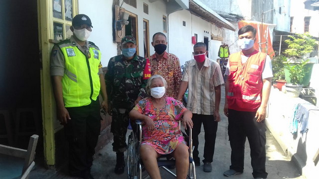 Tampabatas.com(SMSI), Surakarta.- Babinsa Kelurahan Sudiroprajan Koptu.Agus S Koramil 04/Jebres Kodim 0735/Surakarta dampingi penyerahan bantuan kursi roda kepada istri Sugito warga kampung Pinggir Kali RT 03/RW 03 Kelurahan Sudiroprajan berupa 1 buah kursi roda dari PMI Surakarta,Jum’at 12/06/2020.
