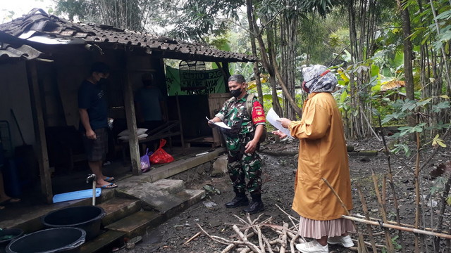 Boyolali.- Babinsa Tempursari Koramil 10/ Sambi Kodim 0724/Boyolali bersama Bbainkamtibmas, Tim Nakes Puskesmas Sambi melaksanakan tracking ke warga yang positif untuk melakukan pelacakan kontak erat atau tracing contact dari warga yang terkonfirmasi positif virus Corona atau Covid 19.