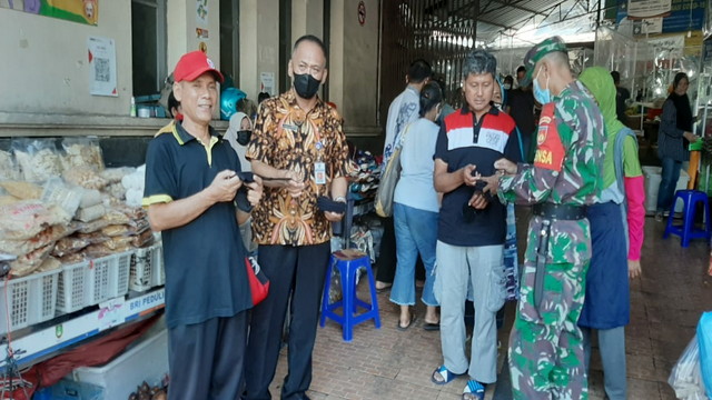 Surakarta – Salah satu upaya Sertu Hidayat Kurniawan selaku Babinsa Kelurahan Sudiroprajan dalam mencegah serta meminimalisir penyebaran Covid-19 pada masa Pemberlakuan Pembatasan Kegiatan Masyarakat (PPKM) Berbasis Mikro, yakni melaksanakan penertiban dan sosialisasi Protokol Kesehatan (Prokes) disekitaran Pasar Gede Jl.Urip Sumoharjo Kecamatan Jebres Kota Surakarta.