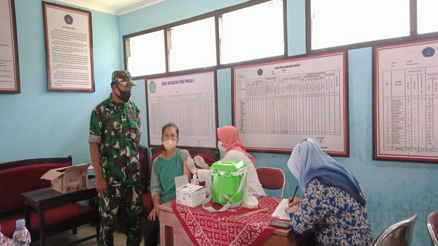 Program pemerintah untuk memberikan vaksinasi kepada seluruh masyarakat, mulai usia 6 tahun sampai dengan Lansia terus dilakukan, anggota Babinsa dari Koramil 06/Batuwarno pun selalu terlihat aktif memberikan pendampingan.