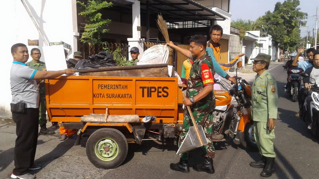 Surakarta.- Babinsa Kelurahan Tipes Koramil 03/Serengan Kodim 0735 Surakarta, Serka Sarmin dan Sertu S. Anjasmoro mengajak, mempelopori warga Masyarakat dan Staf Kelurahan serta Tim Kebersihan Kelurahan Tipes Kecamatan Serengan untuk melaksanakan kerja bakti membersihkan area Perkantoran Kelurahan guna untuk merawat Aset Pemerintah kota Surakarta, Selasa pukul 09.00 Wib, 08/11/2022.