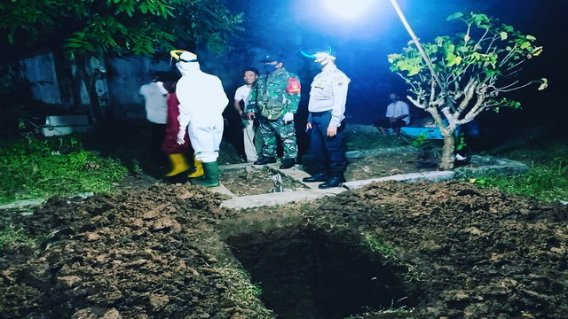Tampabatas.com(SMSI), Boyolali.- Babinsa Koramil 13/Nogosari Kodim 0724/Boyolali Serka Ambang turut mengamankan jalannya proses pemakaman jenazah warga binaannya yang dilakukan dengan protokol Covid-19. Pemakaman dilakukan di tempat pemakaman umum, di Dukuh Tinawas RT 6 RW 01 Desa Rembun Kecamatan Nogosari kabupaten Boyolali. Senin Malam 13/07/2020.