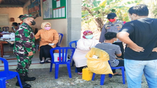 Demi menjaga keamanan dan kelancaran pelaksanaan vaksinasi Covid-19 kepada masyarakat di desa binaannya, personel Babinsa bersama aparat lain aktif mendampingi tim medis, serta memberikan pemahaman kepada masyarakat bahwa vaksinasi pasti aman dan halal untuk digunakan.