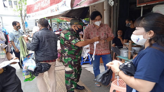 “Pembagian masker dan Himbuan Prokes trus kami lakukan tersebar dalam beberapa titik, terutama di pusat-pusat keramaian seperti di pasar tradisional pintu masuk pasar, tempat parkir yang ada di sekitaran pasar gede Surakarta.”tegas Serda Agus.