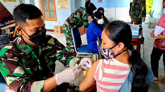 Surakarta.- Lanud Smo. Serbuan vaksinasi TNI-Polri tahap ke-dua yang masih akan terus berlanjut hingga akhir bulan Oktober ini bertujuan untuk turut mewujudkan program pemerintah secara nasional sehingga diharapkan akan mampu turut mewujudkan masyarakat yang sehat, produktif, serta membangkitkan kembali ekonomi nasional. Selasa 12/10/2021.