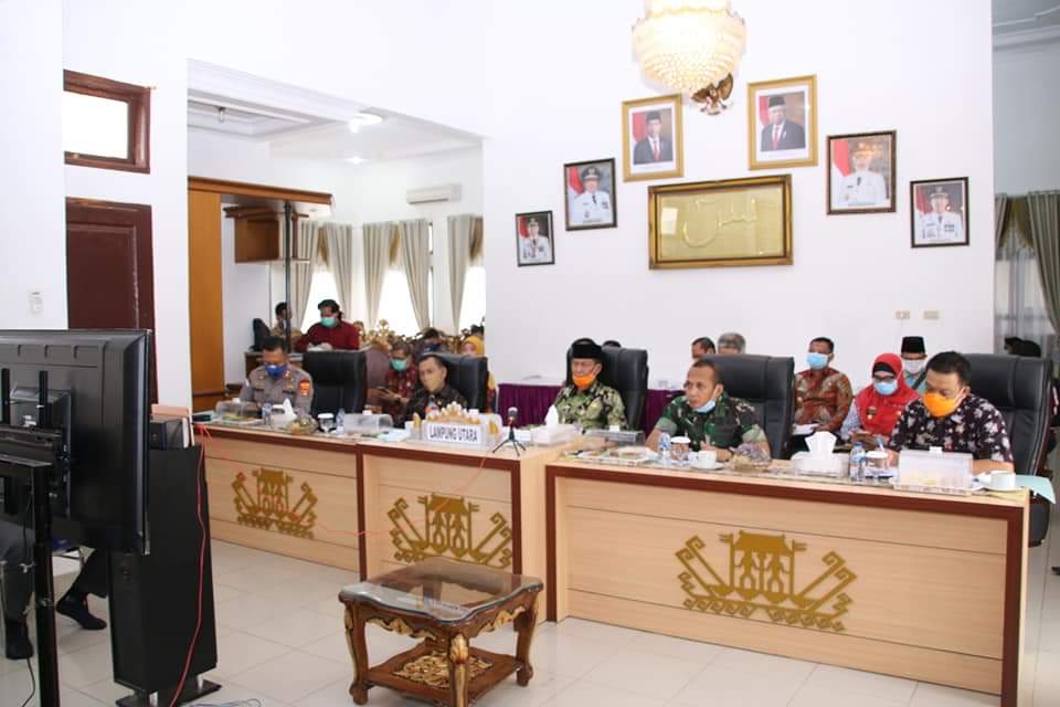 Video conference diadakan dalam rangka Percepatan Penanggulangan Gugus Covid-19. Dalam kegiatan ini Gubernur Arinal menyampaikan hal-hal yang berhubungan dengan penanganan serta antisipasi terhadap berkembangnya Covid-19,Ikut serta mendampingi Plt. Bupati, Pj. Sekdakab. LU dan Para Kepala OPD yang berhubungan langsung dengan penanganan Covid-19.