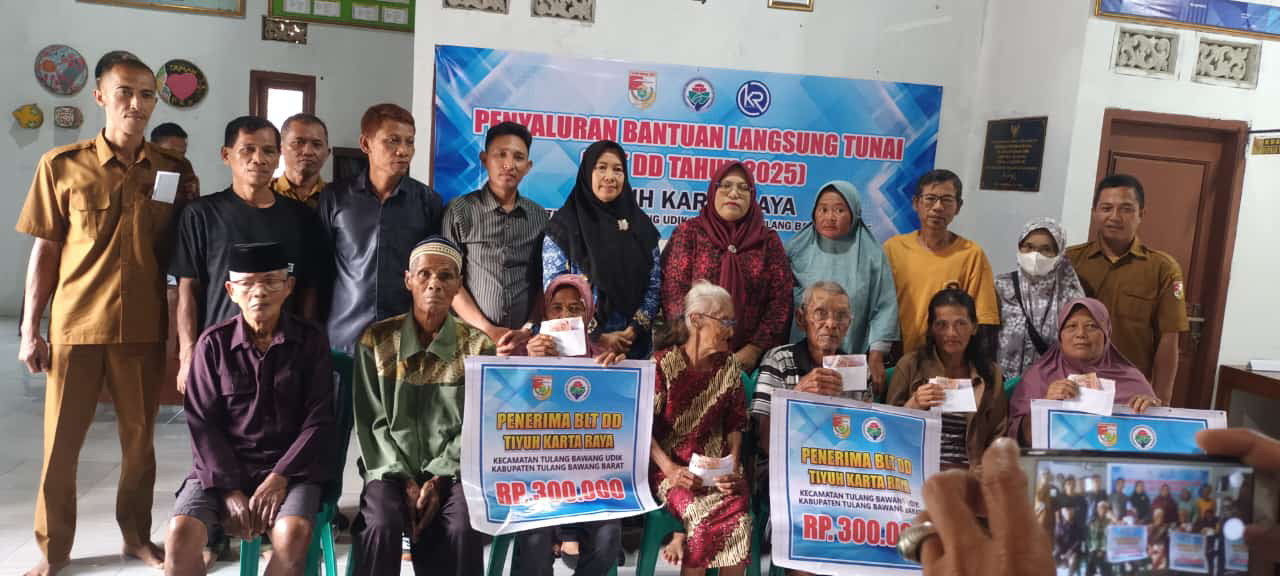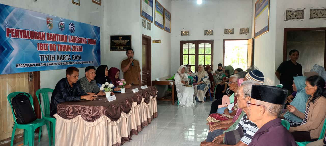 BLT-DD (Bantuan Langsung Tunai- Dana Desa) tahap satu tahun 2025 telah dibagikan langsung kepada KPM (Keluarga Penerima Manfaat) di Balai Tiyuh Kartaraya pada