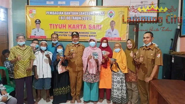 Pemerintah Tiyuh Karta Sari menyalurkan Bantuan Langsung Tunai Dana Desa (BLT – DD) tahap pertama tahun 2023 kepada 25 Keluarga Penerima Manfaat (KPM) sebesar Rp.900 ribu rupiah (Januari, Februari dan Maret) yang dilaksanakan di Aula Balai Tiyuh Karta Sari Kecamatan Tulangbawang Udik Kabupaten Tulangbawang Barat, Senin (03/04/2023).