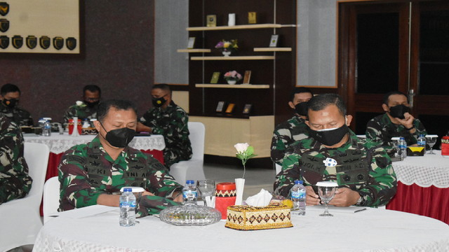 Bandar Lampung, Danrem 043/Gatam Brigjen TNI Drajad Brima Yoga S.I.P.,M.H, rabu 18/08/2021. pukul 08.30 WIB, menyambut Kunker Waasops Kasad Bidang Siapsat Brigjen TNI Rifki, S.E., M.M, dan Pabandya Renhartapsat Spaban III/Binsiapsat Sopsad Mayor Inf Tony Firmanto,di Makorem 043/Gatam Jl. Teuku Umar Bandar Lampung.