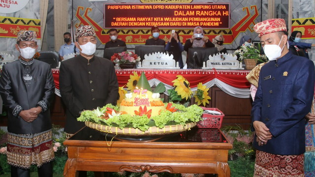 Bupati Lampung Utara H. Budi Utomo Melantik dan Sumpah Jabatan kepada Lima pejabat Pimpinan Tinggi Pratama (Eselon II B) dalam rangka optimalisasi penyelenggaraan Pemerintahan Daerah, acara digelar di rumah Dinas Bupati, Rabu. 14/07/2021.