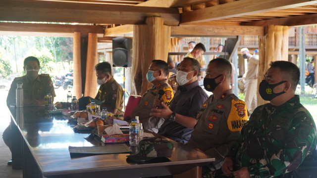 “Hari ini kita evaluasi percepatan vaksinasi, apa–apa saja yang menjadi hambatan dan kendala agar segera diperbaiki. Dimana ada sumbatan data dan sebagainya, harus dikolaborasikan bersama Camat dan Tiyuh.” Jelas Bupati.