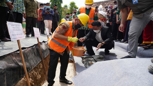 Foto: Bupati Tubaba Umar Ahmad letakkan batu pertama pembangunan masjid Al-Muhajirin SMK Muhammaddiyah Tumijajar.