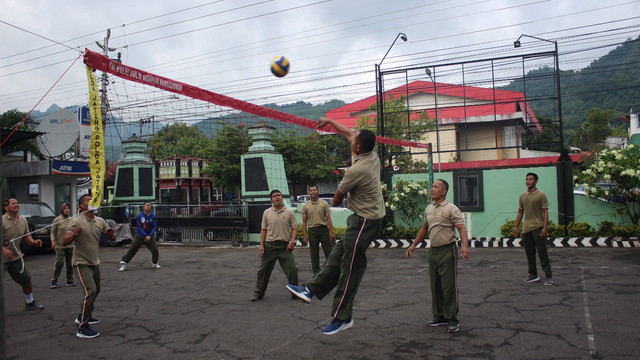 Seperti yang dilakukan oleh Prajurit dan PNS Kodim 0728/Wonogiri, setelah selesai melaksanakan apel pagi mereka melaksanakan senam pemanasan yang dilanjutkan dengan olahraga bola Volly di halaman Makodim setempat, Jum’at 28/01/2022.