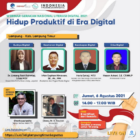 Tampabatas.com(SMSI-Lampung) Tulangbawang Barat (Tubaba).- Lampung Timur (Lamtim) Kementerian Komunikasi dan Informatika RI (Kemenkominfo) menggelar program literasi digital nasional sektor pendidikan wilayah Sumatera bagi siswa/siswi SMA di Kabupaten Lampung Timur, Provinsi Lampung. Kegiatan secara nonton bareng (nobar) ini mengangkat tema “Sukses Belajar Online Dengan Kemampuan Literasi Digital” dan akan digelar pada Kamis (12/10) pukul 09.00-11.00 WIB. […]