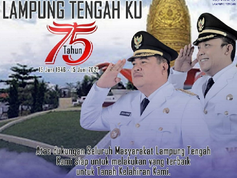 Tampabatas.com(SMSI-lpg), Lampung Tengah (Lamteng).- MUSA AHMAD- ARDITO, Bupati dan Wakil Bupati Lampung Tengah mengucapkan dirgahayu Ke-75 Kabupaten Lampung Tengah.