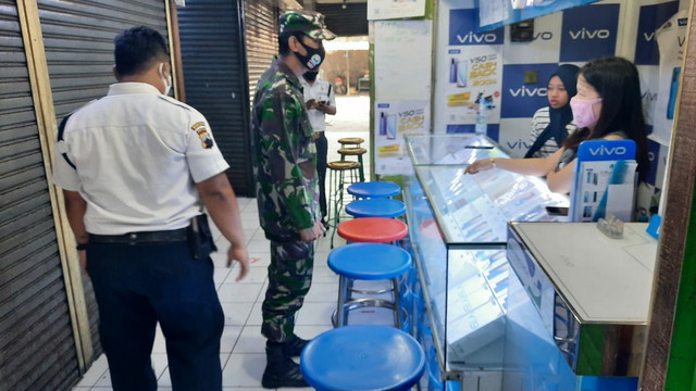 Tampabatas.com(SMSI), Surakarta. – Kamis 18/06/2020 pukul 09.30 Wib bertempat pertokoan pasar Singosaren Plaza Jl. Rajiman dan jl gatot Subroto Coyudan Kelurahan Kemlayan Kecamatan Serengan Kota Surakarta, Babinsa Kelurahan Kemlayan Koramil 03/Serengan Kodim 0735/Surakarta Serka Junaidi melaksanakan sosialisasi New Normal dengan memberikan tanda jarak dan pengertian kepada para penjual agar mengikuti program distancing dari pemerintah yang bertujuan mencegah penularan (Covid-19).