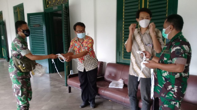 Surakarta. – Bertempat di RT 01 RW 01 kelurahan Keprabon kecamatan Banjarsari kota Surakarta Babinsa Kelurahan Keprabon Koramil 02 Banjarsari Kodim Surakarta Serka Daniel dan Serda Sugiyanto bersama Ba Otsus Serda Simon membagikan masker gratis kepada warga masyarakat, Sabtu 02/10/2021.