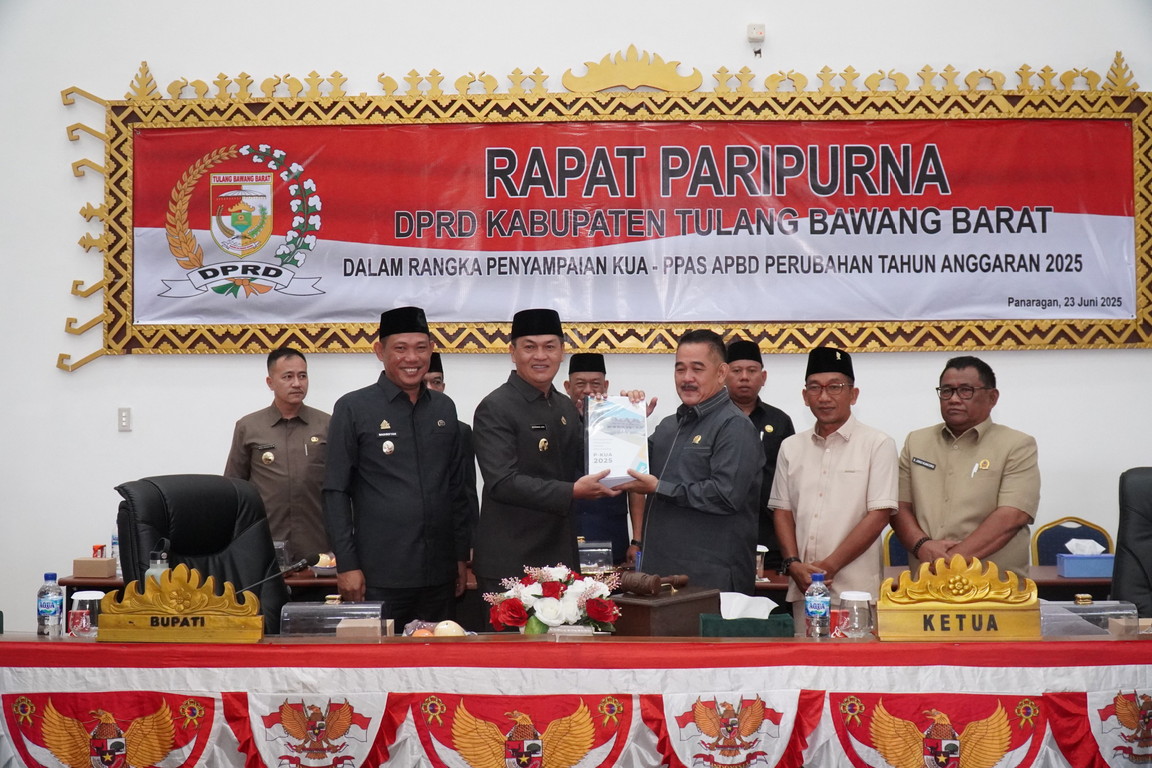 DPRD (Dewan Perwakilan Rakyat Daerah) Kabupaten Tulangbawang Barat adakan Rapat Paripurna dalam rangka penyerahan dari Pemkab Tubaba Rancangan Perubahan Kebijakan Umum Anggaran (KUA) dan Prioritas serta Plafon Anggaran Sementara (PPAS) Anggaran Pendapatan dan Belanja Daerah (APBD) Perubahan Tahun Anggaran 2025,