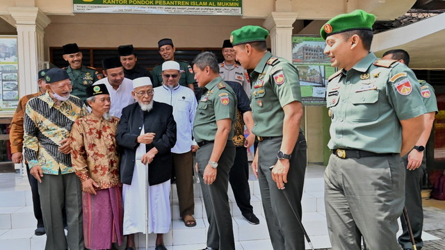 Sukoharjo. – Didampingi Dandim 0726/Sukoharjo Letkol Czi Slamet Riyadi, S.E. dan Danrem 074/Wrt Kolonel Inf Anan Nurakhman, S.I.P., Pangdam IV/Diponegoro Mayjen TNI Widi Prasetijono beserta rombongan melaksanakan kunjungan kerja dan silaturahmi dengan ulama di Pondok Pesantren Islam Al Mukmin Ngruki, Sukoharjo, Jawa Tengah, Kamis (17/112022).