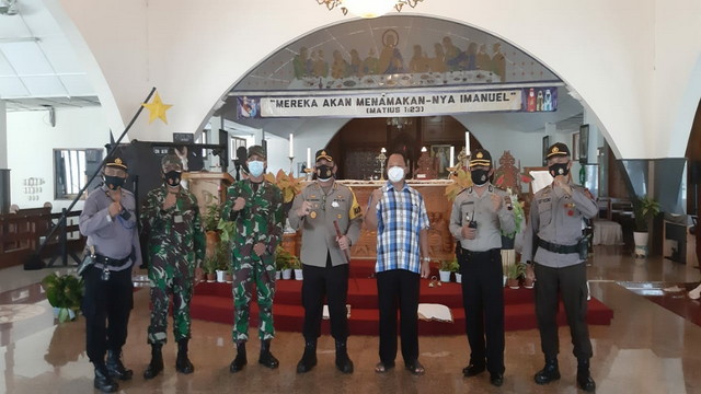 Surakarta – Kapolresta Surakarta Kombes Pol Ade Safri Simanjuntak bersama Dandim 0735/Surakarta Letkol Inf Wiyata S. Aji. SE. MDS. bersama jajarannya melaksanakan pengecekan akhir kesiapan Pos-pos pengamanan perayaan Natal di Gereja-gereja wilayah Kecamatan Jebres Surakarta, Kamis, 24/12/2020.