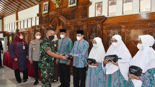 Sragen.- Dandim 0725/Sragen Letkol Inf Anggoro Heri Pratikno, S.IP menghadiri Pamitan Jema’ah Calon Haji Kab.Sragen Tahun 2022, sebagai penanggungjawab kegiatan Drs Tatag Prabawanto B, MM (Setda Sragen) bertempat di Pendopo Sumonegaran Rumah Dinas Bupati Sragen, Selasa 07/06/2022.