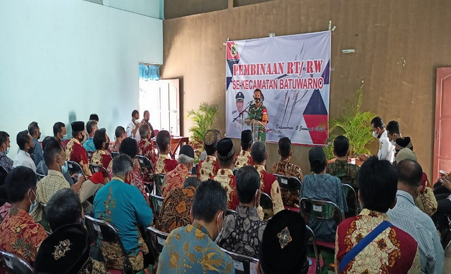 Wonogiri. – Danramil 06/Batuwarno Kapten Inf Budi Rahardjo menghadiri kegiatan Pembinaan bagi Ketua RT dan Ketua RW se-Kecamatan Batuwarno, yang bertempat di Balai Desa Batuwarno, Kec. Batuwarno , Kamis 06/01/2022.