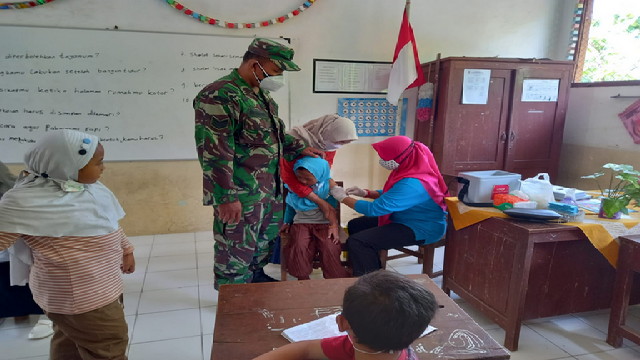 Wonogiri.- Danramil 22/Slogohimo Kapten Arm Yadiman dan Kapolsek Slogohimo AKP Kukuh Wiyono, memimpin langsung anggotanya untuk memberikan himbauan kepada warga agar lebih disiplin menerapkan protokol kesehatan.