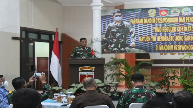 Dalam kesempatan tersebut, Dandim 0728/Wonogiri Letkol Inf Imron Masyhadi yang selaku Dan Satgas TMMD menyampaikan paparan terkait pelaksananaan TMMD Reguler ke-110 yang berada di Dusun Gemawang, Desa Brenggolo, Kecamatan Jatiroto.