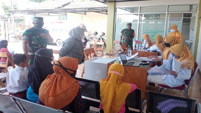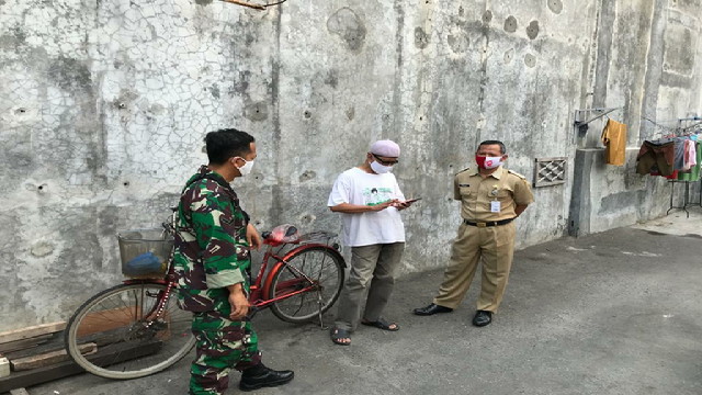 Surakarta – Serda Budiono selaku Babinsa Kelurahan Kepatihan Wetan Koramil 04 Jebres Kodim Surakarta bersama Linmas Kelurahan Gencar memberikan himbaun Prokes dan membagikan masker secara gratis kepada warga masyarakat dan pedagang kali lima guna melindungi warga agar terhindar dari Covid 19 di Jl. Suryo Pranoto Kelurahan Kepatihan Wetan Kecamatan Jebres, Senin 14/02/2022.