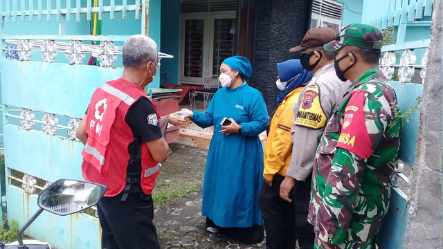 Surakarta. – Bertempat di Rt 03/10 Kelurahan Pasarkliwon Kota Surakarta Babinsa Kelurahan Pasarkliwon Koramil 05/Pasar Kliwon Kodim Surakarta Serda Agus Santoso bersama Bhabinkamtibmas, dan petugas dari puskesmas serta jogo tonggo melaksanakan pengecekan pemantauan dan pemberian obat,vitamin bagi warga yang melaksanakan isolasi mandiri, Sabtu 19/02/2022.