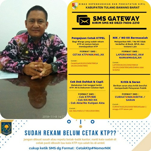 Perluasan jaringan pelayanan tersebut dengan meluncurkan inovasi program e-smile, yang merupakan layanan Dinas Kependudukan dan Catatan Sipil Kabupaten Tulangbawang Barat melalui jaringan online.