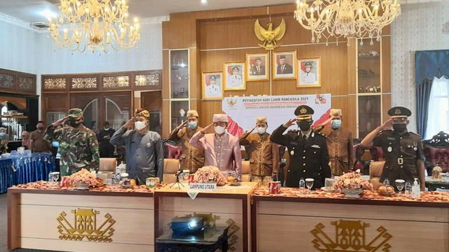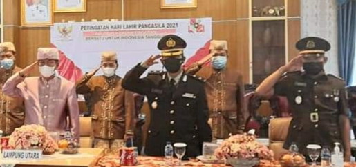Dewan Perwakilan Rakyat Daerah Kabupaten Lampung Utara yang diwakili oleh Wakil Ketua I, H. Dedi Sumirat menghadiri dan mengikuti upacara peringatan Hari Lahir Pancasila secara virtual di Rumah Jabatan Bupati Lampung Utara.