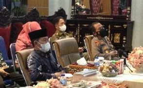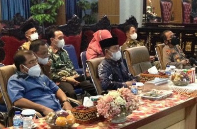 Rapat Koordinasi mengenai Evaluasi Perkembangan Pelaksanaan Pemberlakuan Pembatasan Kegiatan Masyarakat (PPKM) mikro di 34 provinsi secara serentak diadakan melalui video conference (vidcon) di Rumah Jabatan Bupati Lampung Utara, Senin 14/06/2021 lalu.