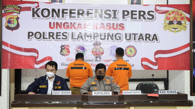 Hal ini di ungkapkan Kapolres Lampung Utara AKBP Kurniawan Ismail SH. SIK. MIK saat menggelar konferensi pers yang di dampingi Kasat Reskrim AKP Eko Rendi Oktama SH bertempat di gedung rekonfu pada Rabu 27/4/2022.
